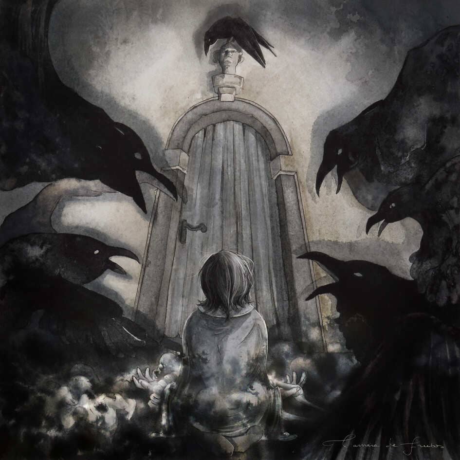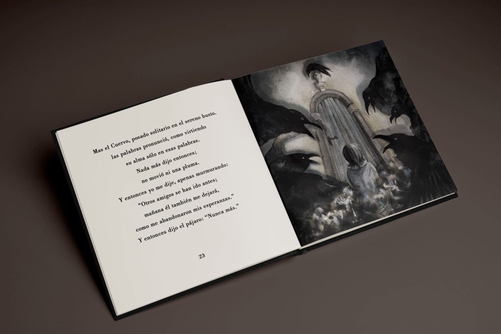 Book cover and interior illustrations for the poem The Raven by Edgar Allan Poe.