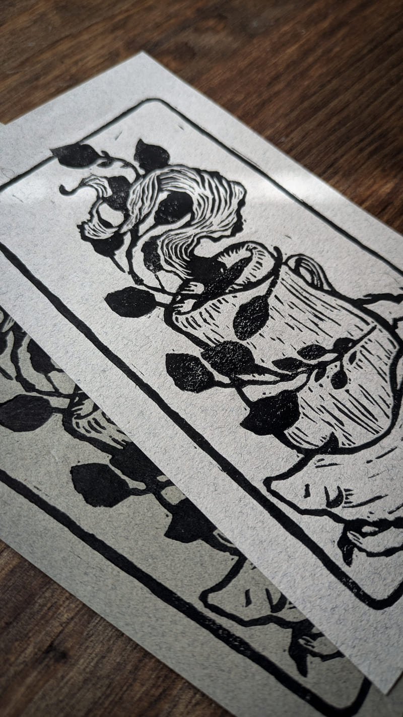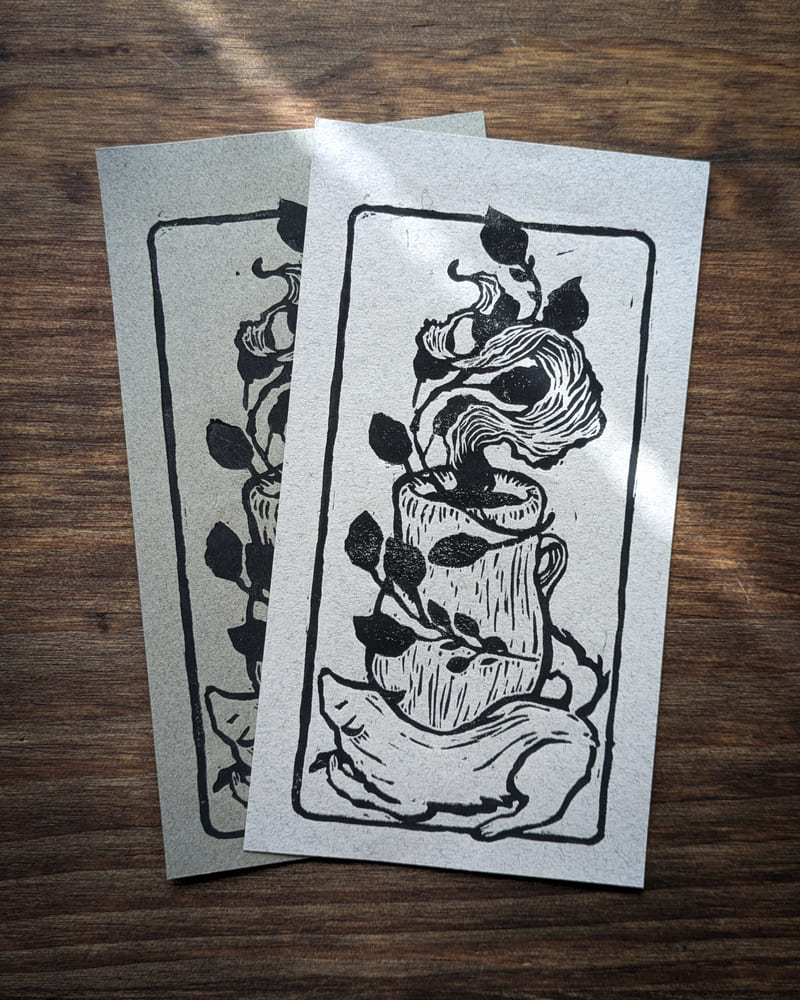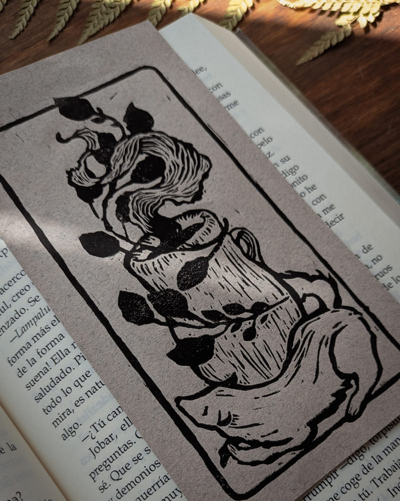 Marcapáginas hechos a mano con la técnica del linograbado, estampados sobre papel Canson en dos tonalidades distintas. Cada uno es especial y único.